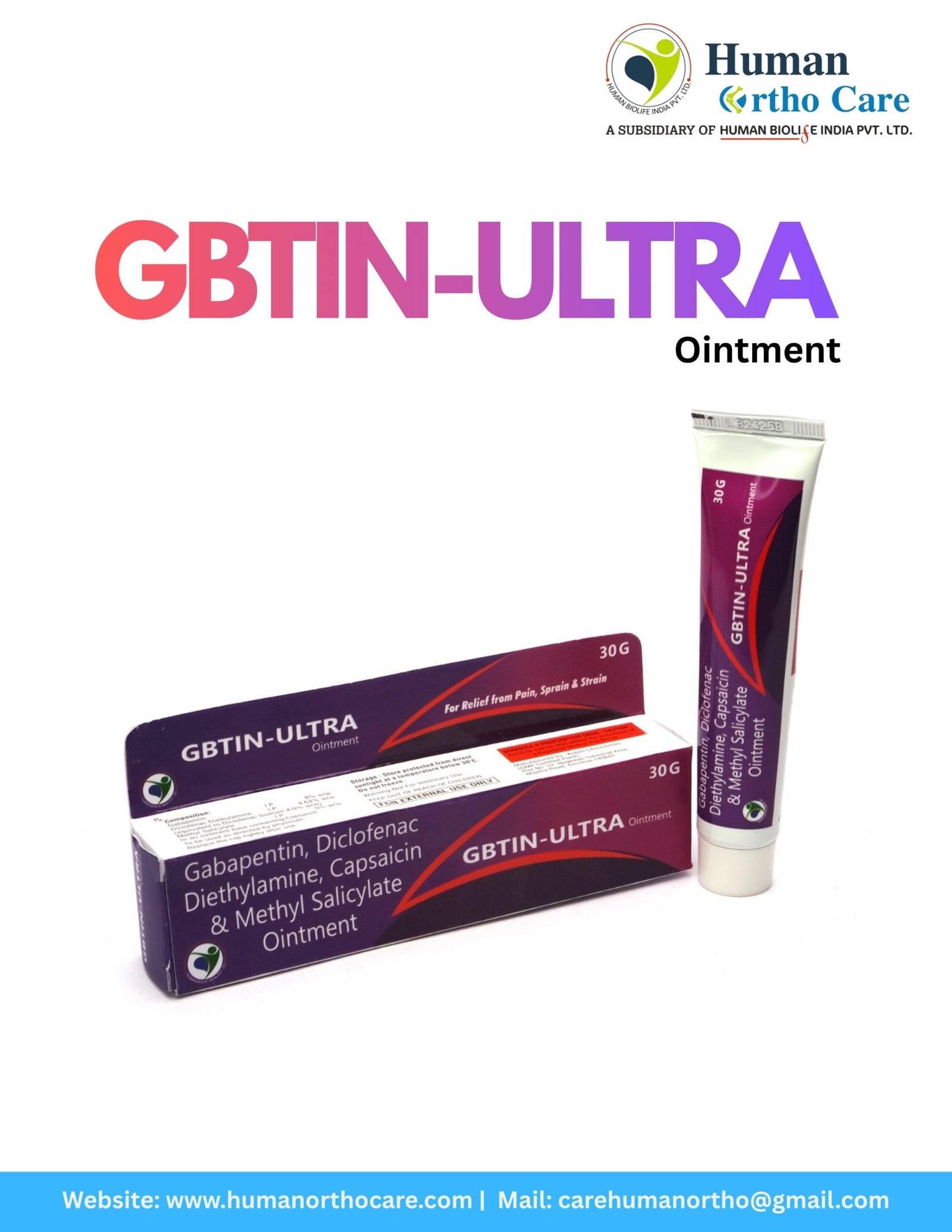 GBTIN-ULTRA is an advanced multi-action ointment engineered for superior relief from complex nerve and muscle pain. The inclusion of Gabapentin makes this formulation particularly effective for neuropathic pain management, while Diclofenac and Methyl Salicylate work in tandem to tackle localized inflammation and soreness. To further enhance its efficacy, Capsaicin is added to provide a warming effect that desensitizes pain receptors and improves blood circulation in the affected area. This “Ultra” formula is designed for conditions like sciatica, diabetic neuropathy, and severe chronic backaches where standard pain relievers might fall short. The ointment’s rich texture allows for a controlled release of medication, providing long-lasting comfort and reducing the frequency of application. GBTIN-ULTRA empowers patients by restoring physical comfort and helping them regain control over their daily movements by targeting both inflammatory and neurological pain pathways simultaneously.