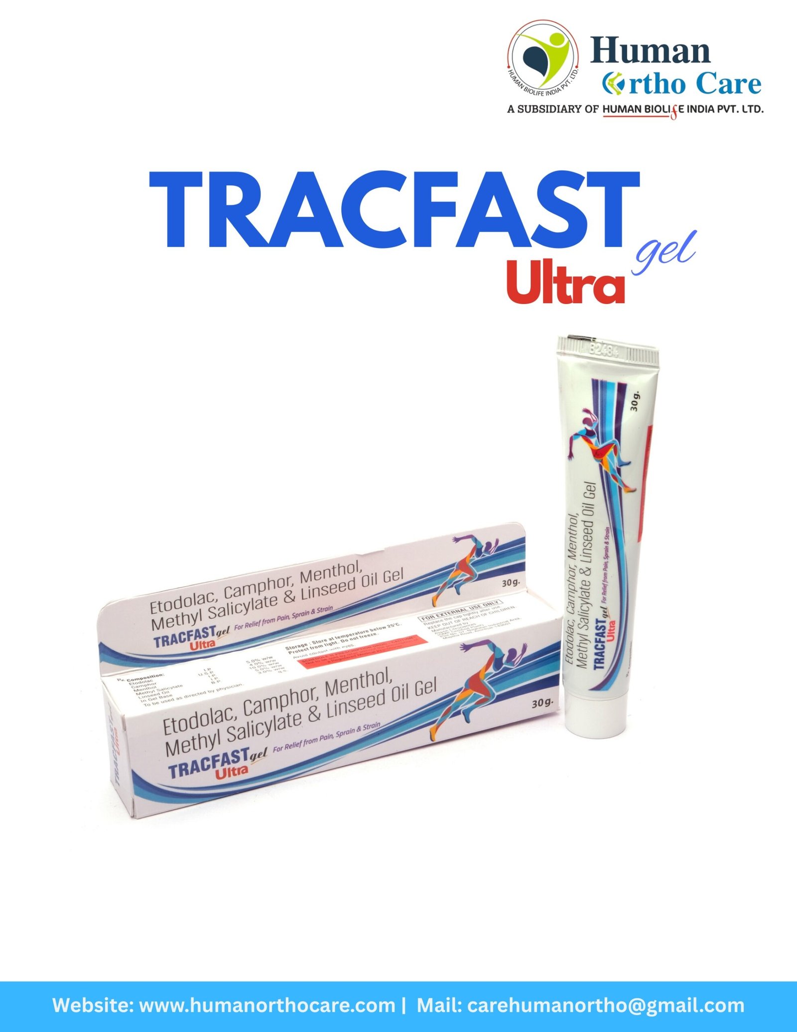 Tracfast Ultra Gel is a premium, fast-acting orthopedic gel designed to provide “Ultra” level relief from intense physical pain and sprains. The standout ingredient, Etodolac, is a powerful non-steroidal anti-inflammatory drug (NSAID) known for its excellent safety profile and efficacy in treating acute joint pain. Combined with Camphor and Menthol, the gel creates a unique dual thermal effect—first cooling and then warming the area—to maximize blood flow and muscle relaxation. This formulation is particularly effective for neck pain, shoulder stiffness, and sports-related strains where rapid recovery is essential. The inclusion of Linseed Oil and Methyl Salicylate ensures that the Etodolac reaches deep-seated tissues for long-lasting anti-inflammatory action. Tracfast Ultra is designed for those who need to get back on their feet quickly, offering a professional-grade solution that bridges the gap between injury and active recovery.
